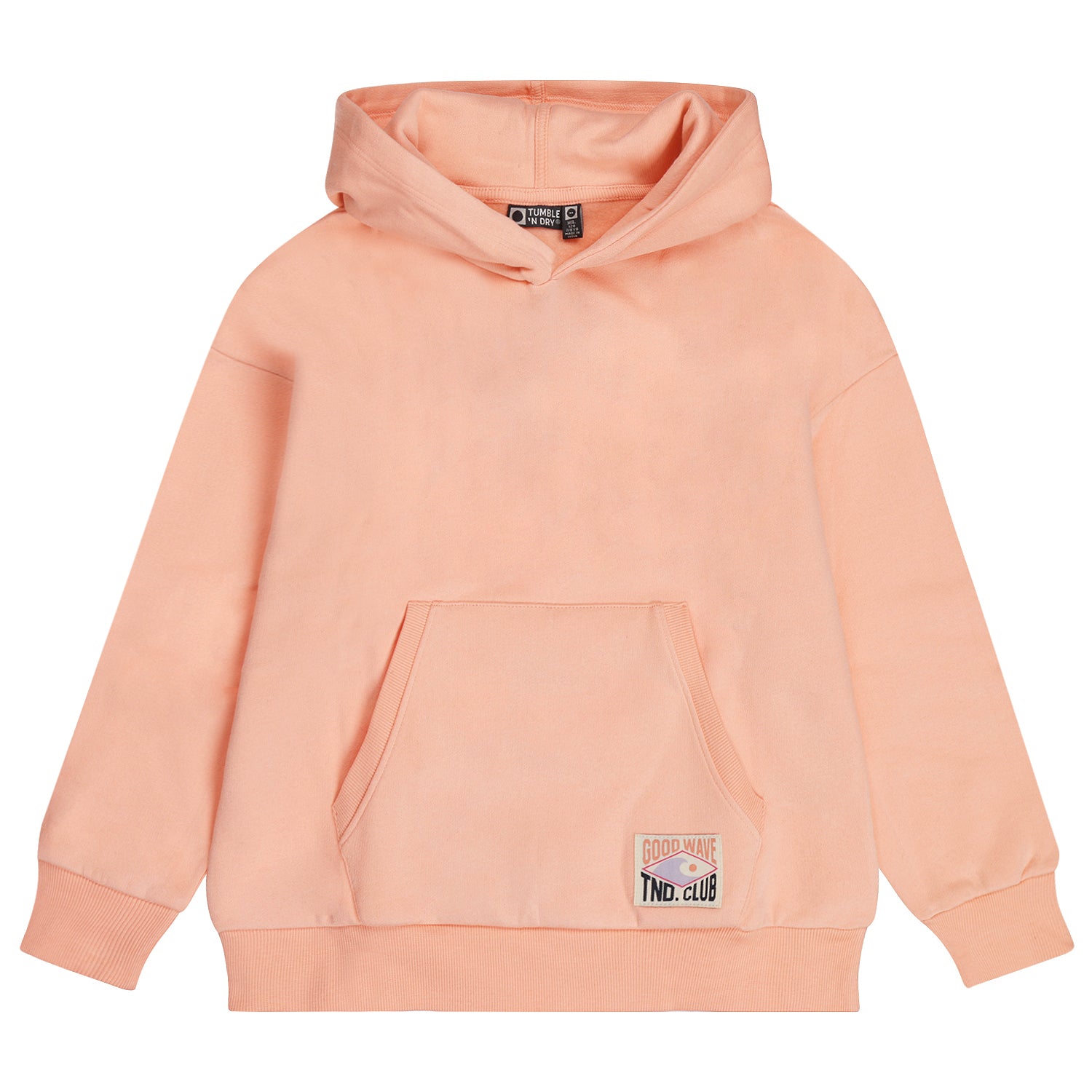 Leuke hoodie in koraaloranje kleur met kangeroezak, valt mooi op maat.