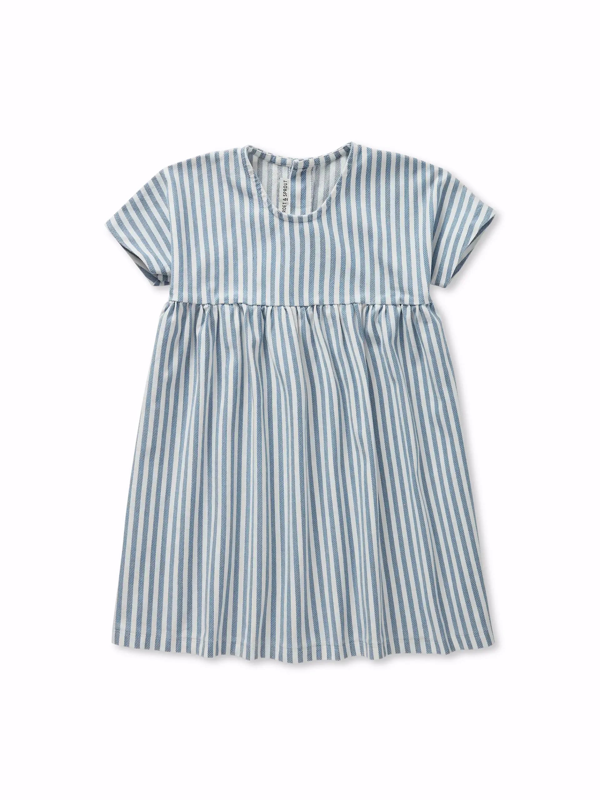 STRIPED A-LINE DRESS DENIM BLUE