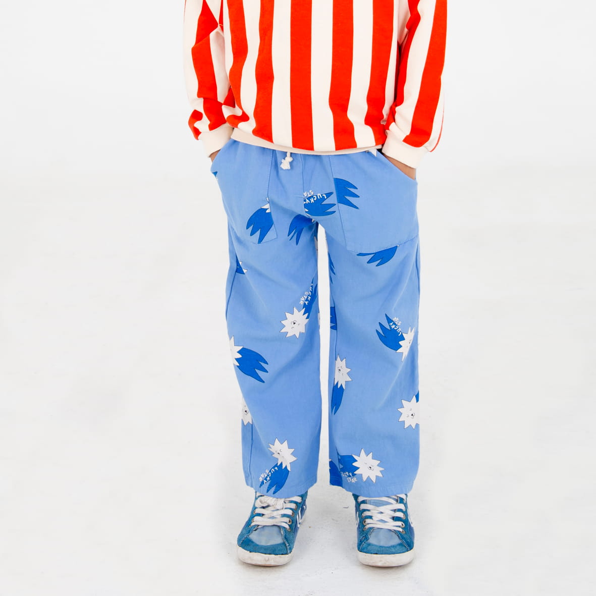 WIDE FIT TWILL POCKETS PANTS BAJA BLUE LUCKY STARS
